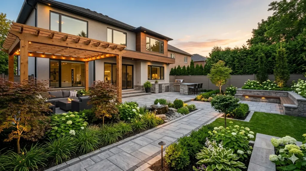 The magic happens when the two work together. A stunning stone patio framed by lush planting and soft landscape lighting doesn’t just look incredible — whether it’s in Vaughan, Markham, Richmond Hill, or Burlington — it creates a completely different experience of your property. It makes your home feel bigger, more livable, and infinitely more inviting.